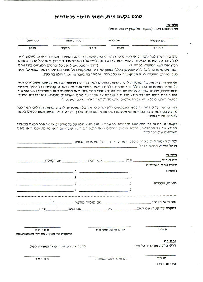 טופס בקשת מידע רפואי וויתור על סודיות